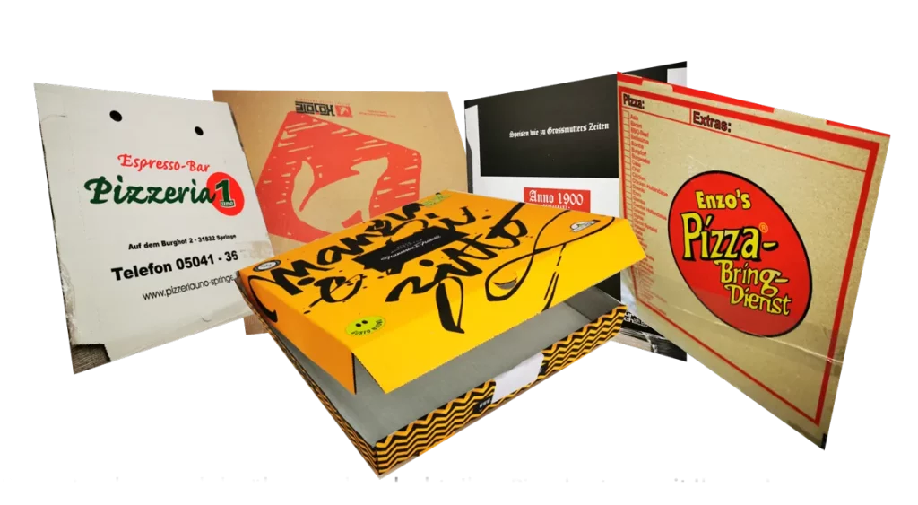 Haben Sie auch schon mal darüber nachgedacht, Ihre Pizzakartons mit Ihrem Logo zu versehen? Das wird jetzt ganz einfach für Sie, indem Sie uns den Auftrag für Ihren Entwurf erteilen. Unsere Grafikabteilung erstellt dann für Sie persönlich die nötigen Druckdaten, die Kosten werden bei Auftragserteilung gutgeschrieben, so entstehen Ihnen keinerlei Kosten dafür.